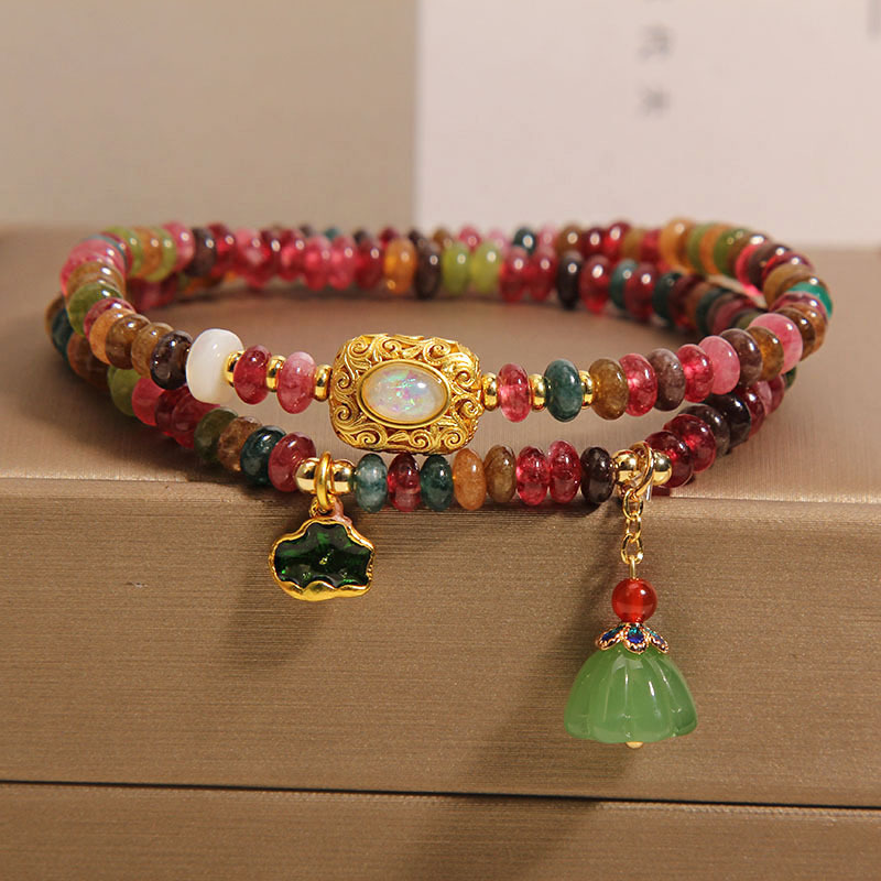 Rainbow Tourmaline Double Ring Bracelet – Lotus-Inspired Women’s Accessory