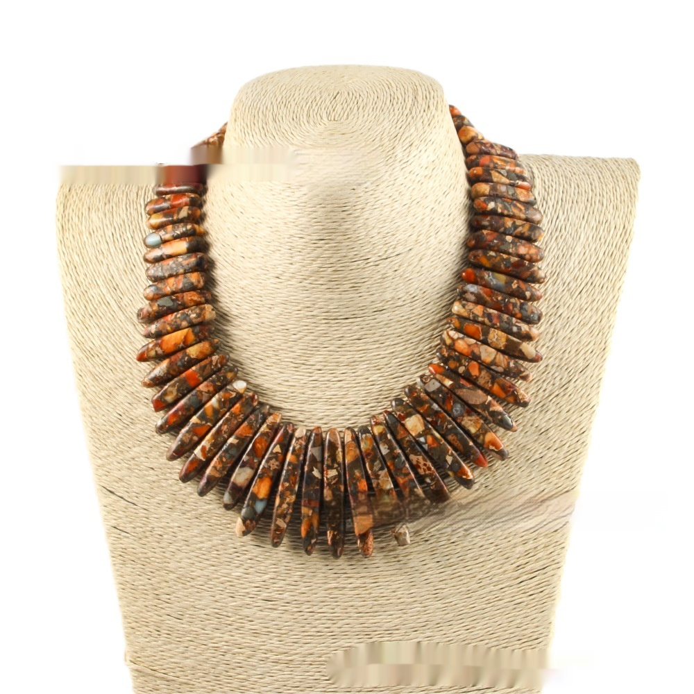 Elevate your style with this Handmade Bohemian Natural Stone Beaded Necklace. Crafted with high-quality natural stones in vibrant red, orange, green, blue, dark blue, purple, brown, and multi-color options, this necklace features irregular beads for a unique and eye-catching look.
