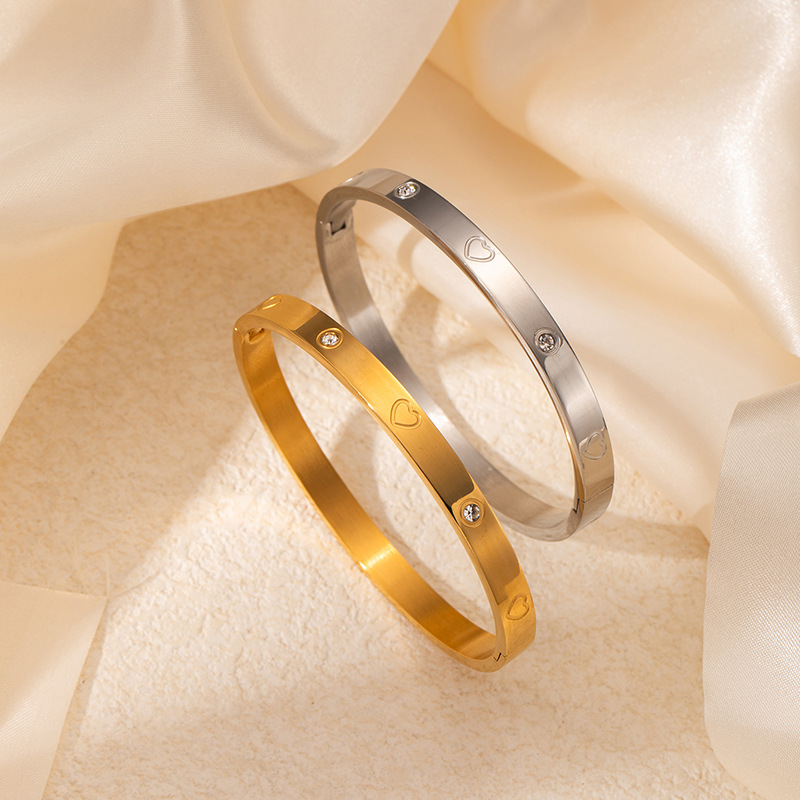 High-Grade Gold-Plated Titanium Steel Bracelet – Women’s Geometric Diamond Accent