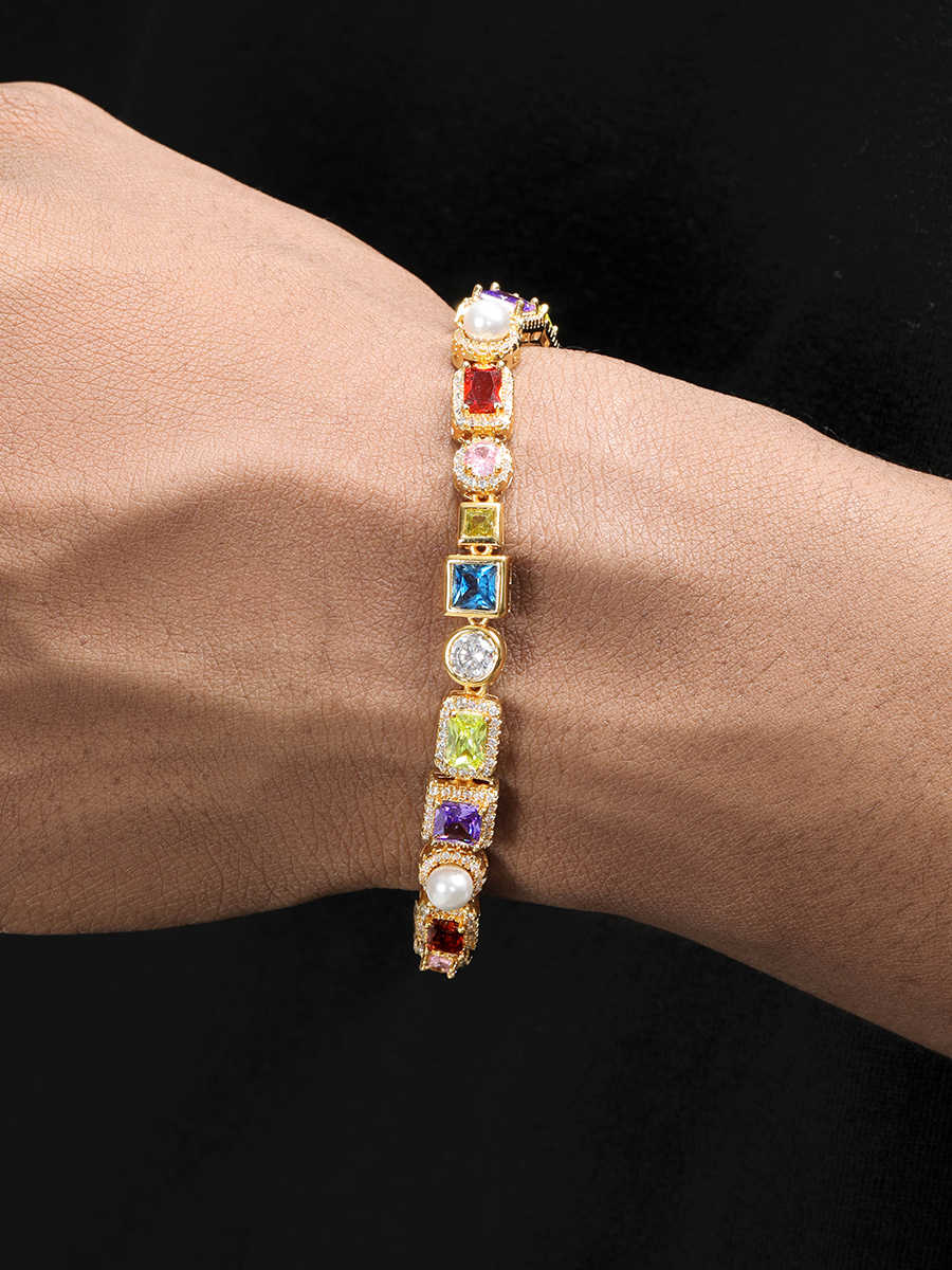- Design Variants: Silver Shell Pearl Colored Zirconium Bracelet Gold Shell Pearl Colored Zirconium Bracelet Oval Colored Diamond Tennis Bracelet Full Diamond Candy Cube Tennis Bracelet Six-Coloured Zirconium Round Diamond Bracelet Colored Square Diamond Tennis Bracelet