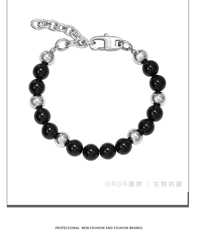 - Material: Glass Pearl / Black Agate with Steel Beads
