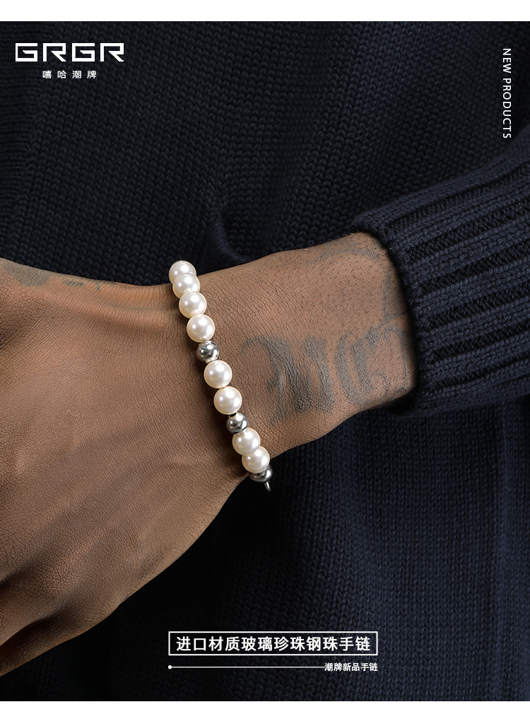 Upgrade your accessory collection with this Men’s Black Agate & Pearl Bracelet, a stylish piece designed for both men and women. Crafted with glass pearls, black agate, and durable steel beads, this bracelet blends elegance with contemporary fashion, making it a must-have for trend-conscious individuals.
