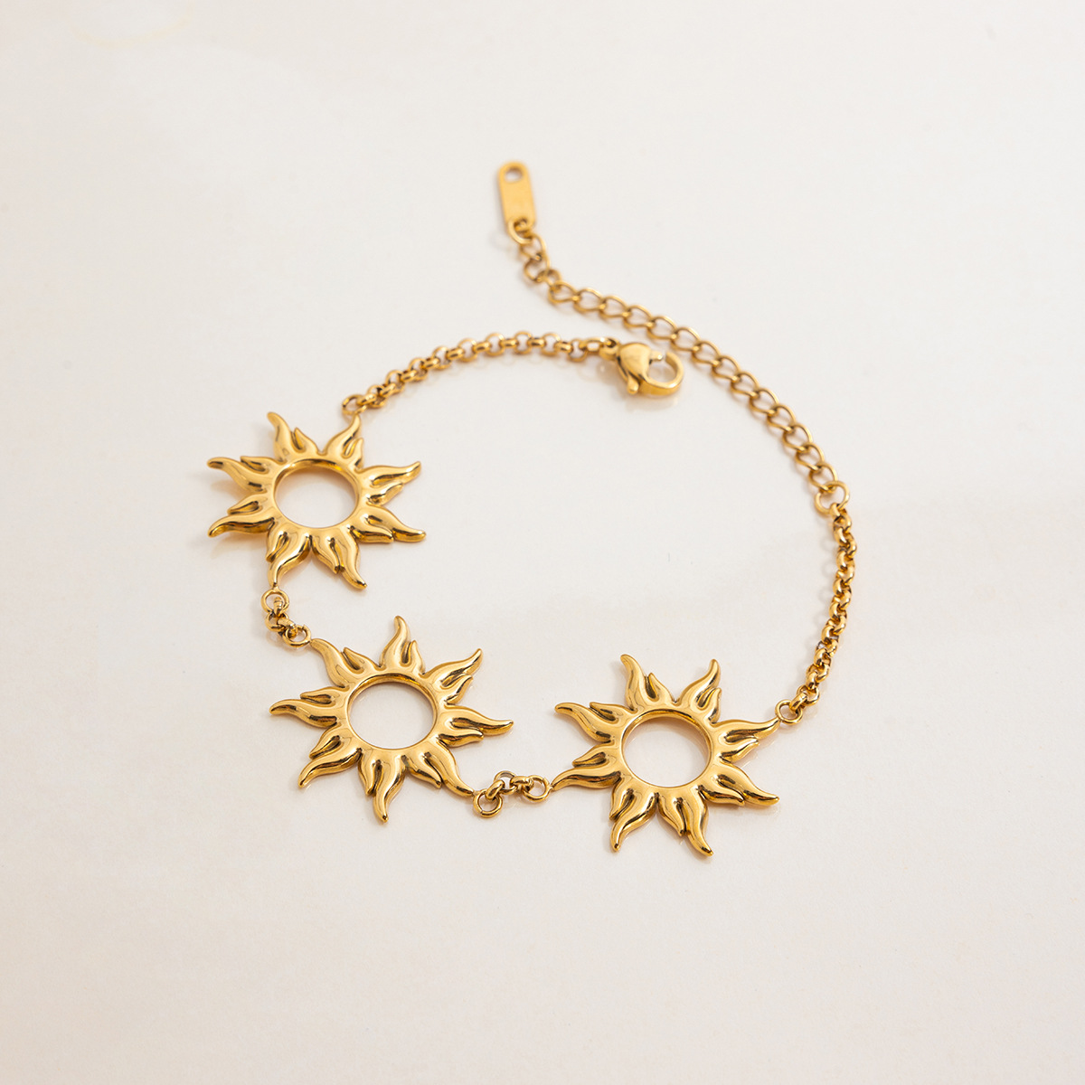 Featuring a geometric design with sun-inspired details, this bracelet adds a touch of sophistication and charm to any outfit. Perfect for daily wear, special occasions, or as a stylish gift, it can also be paired with the matching earrings set to complete a cohesive light luxury look.