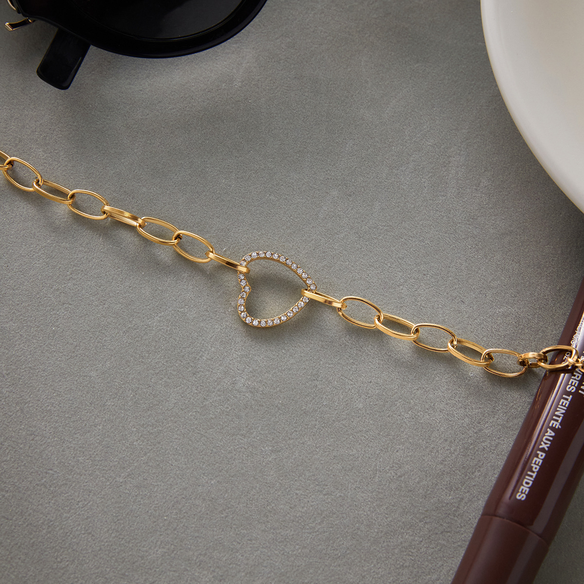 White Rhinestone Heart Bracelet – French Retro Stainless Steel Design
