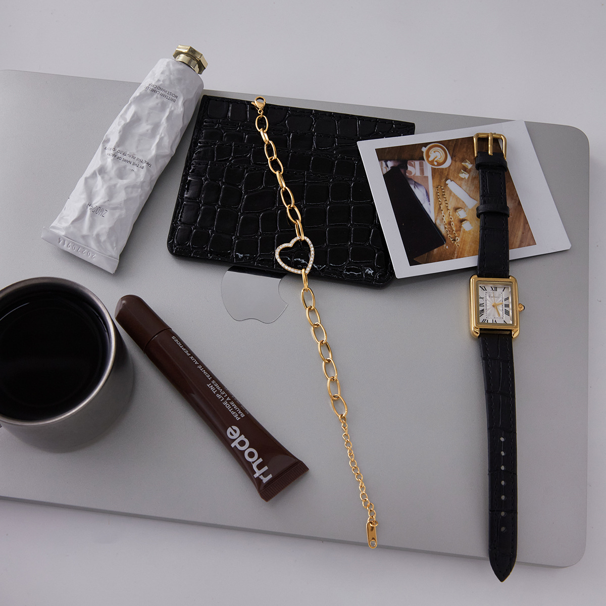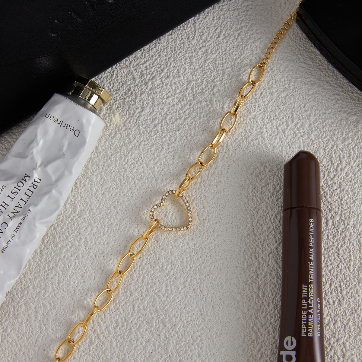 Add a touch of romantic elegance to any outfit with this White Rhinestone Heart Bracelet. Crafted from high-quality stainless steel with a durable electroplating finish, it offers a sparkling white rhinestone heart centerpiece combined with geometric chain elements for a chic French retro look.