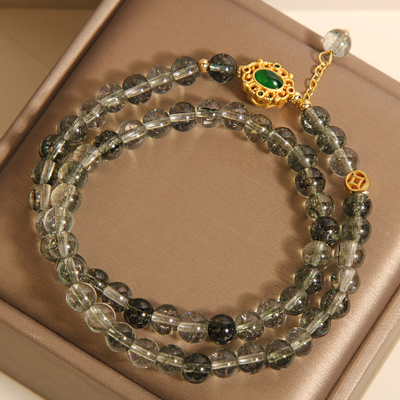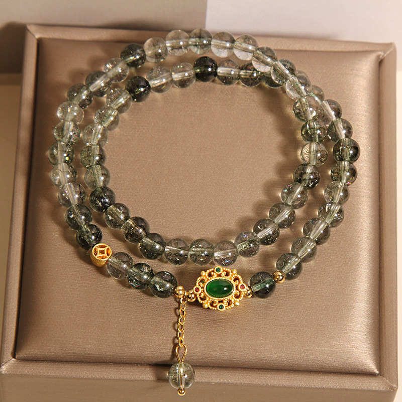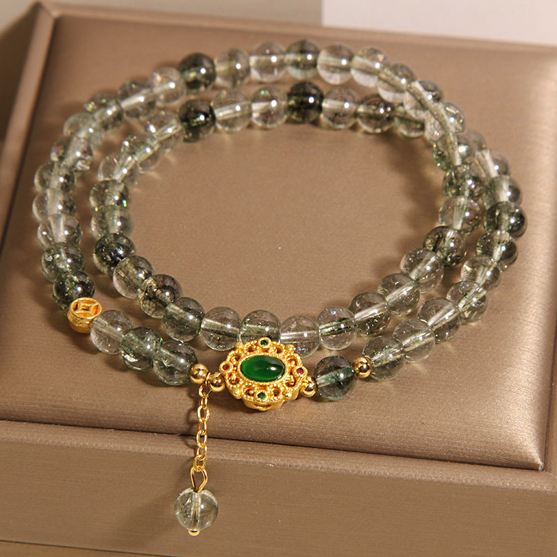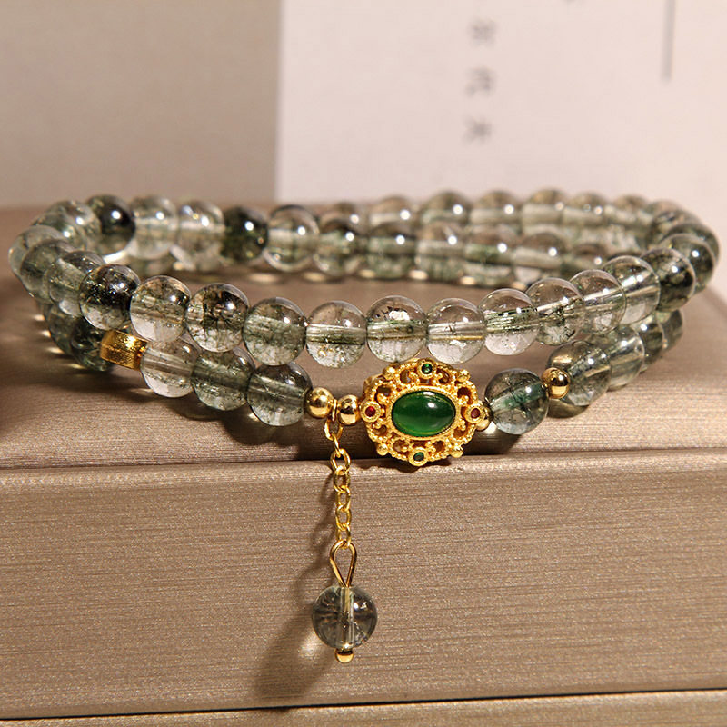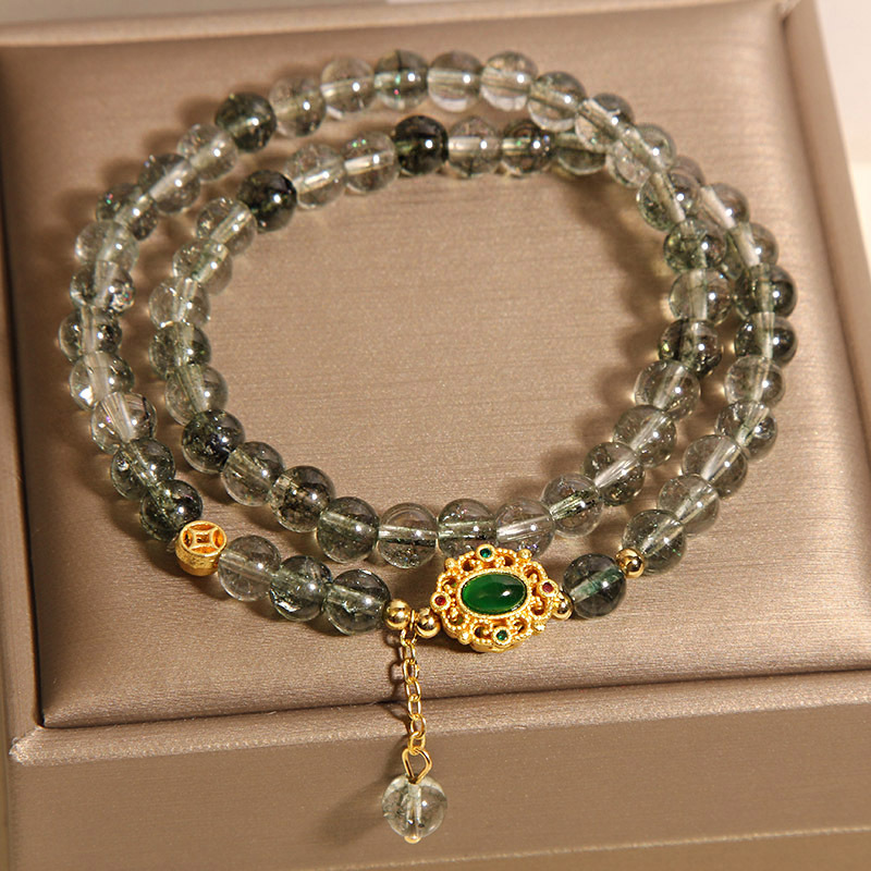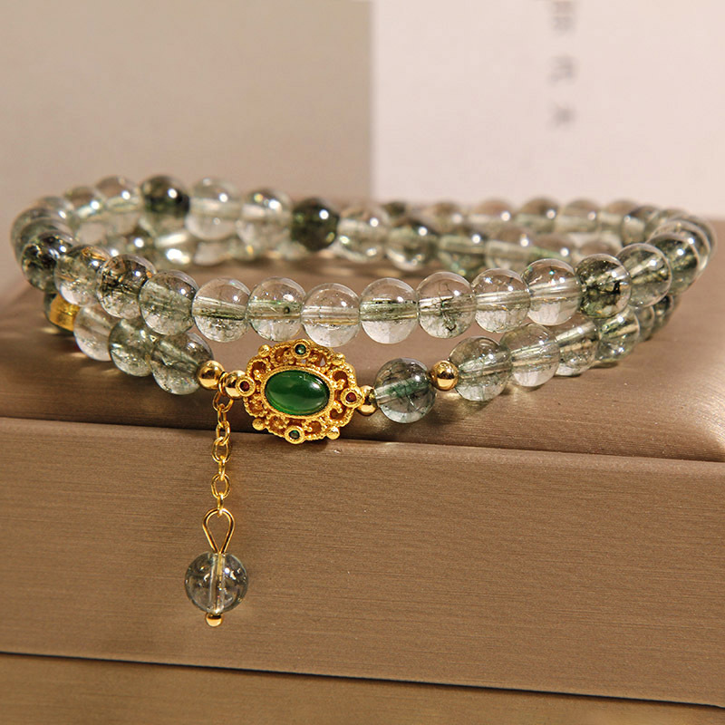 Women’s Green Phantom Quartz Double Circle Bracelet – Japanese & Korean Style