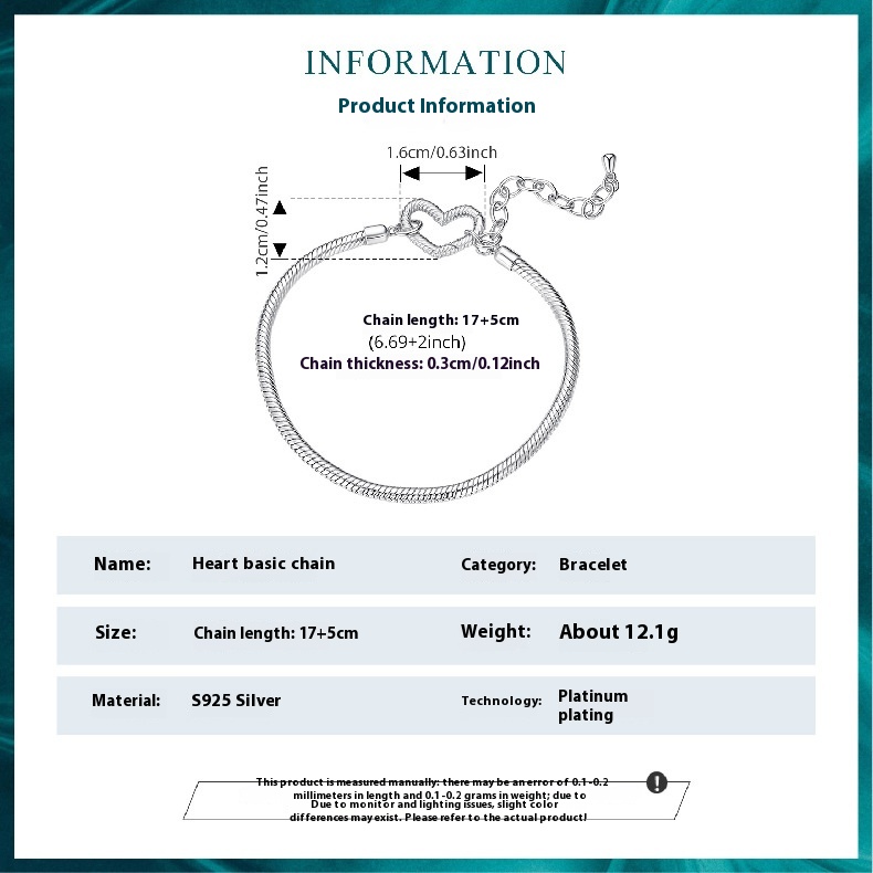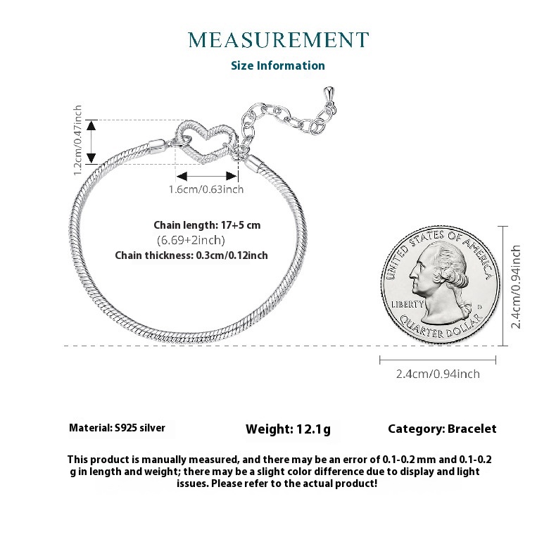 Packing List: 1 × Women’s S925 Sterling Silver Love Bracelet