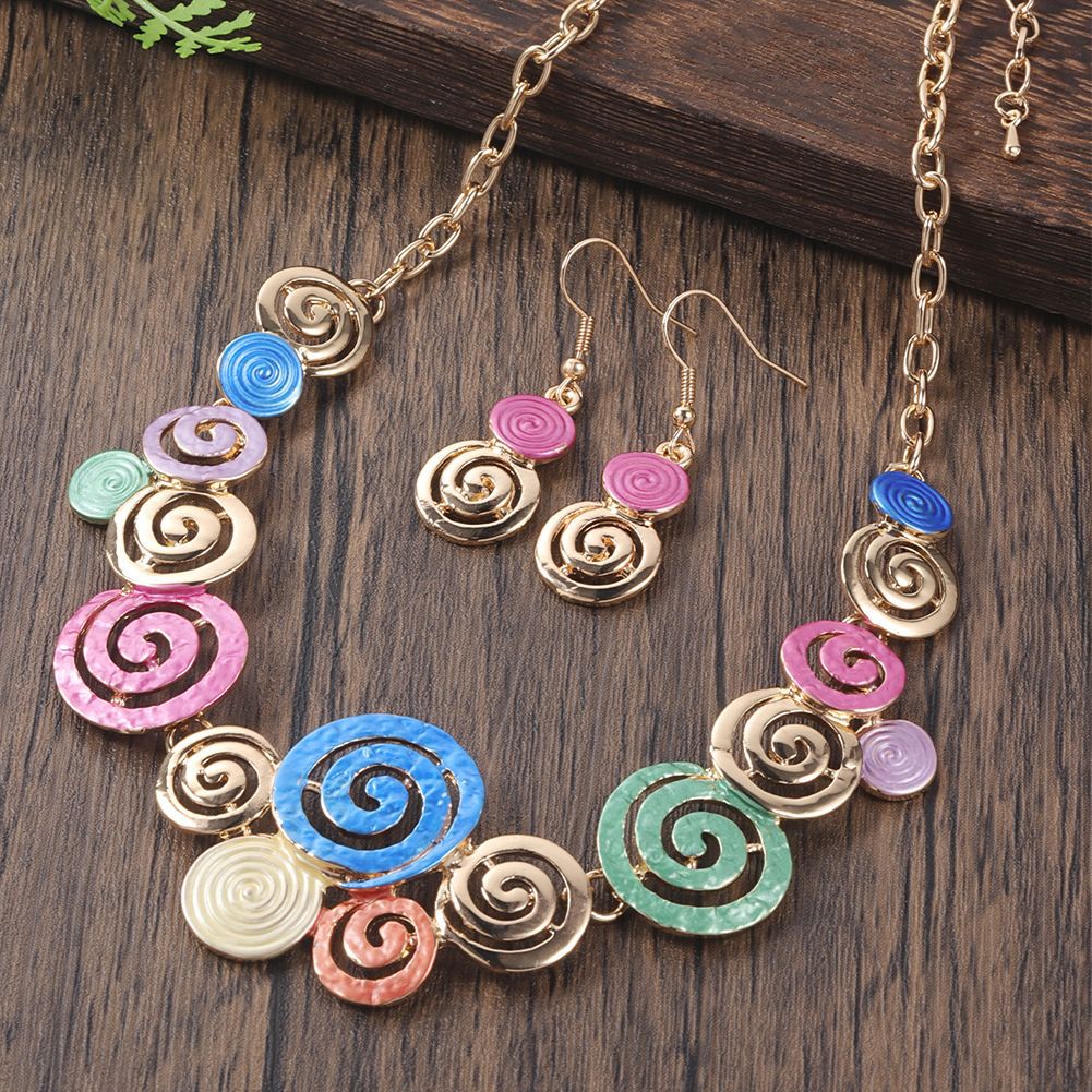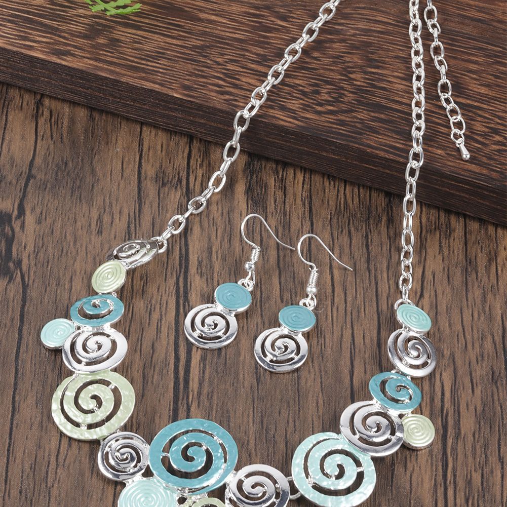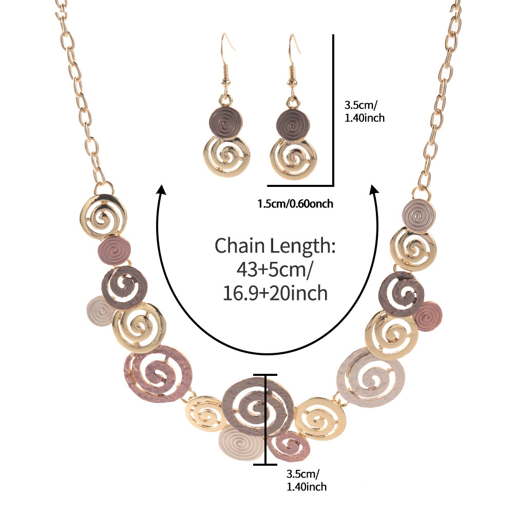 Add a modern and artistic touch to your look with this Zinc Alloy Geometric Round Spiral Necklace and Earring Set. Crafted from high-quality alloy with a dripping oil colour treatment, this set features a hollow spiral design that creates a unique, eye-catching aesthetic.