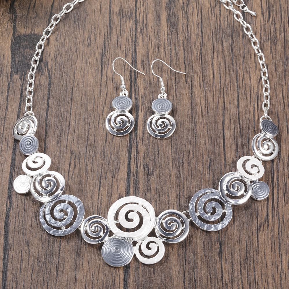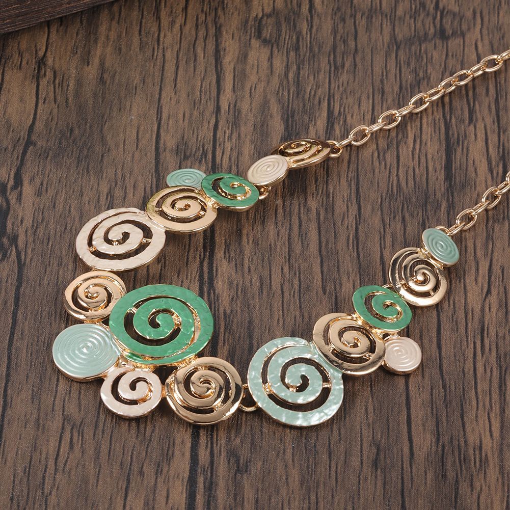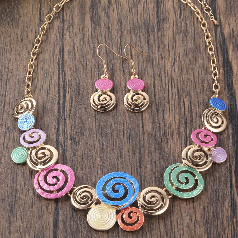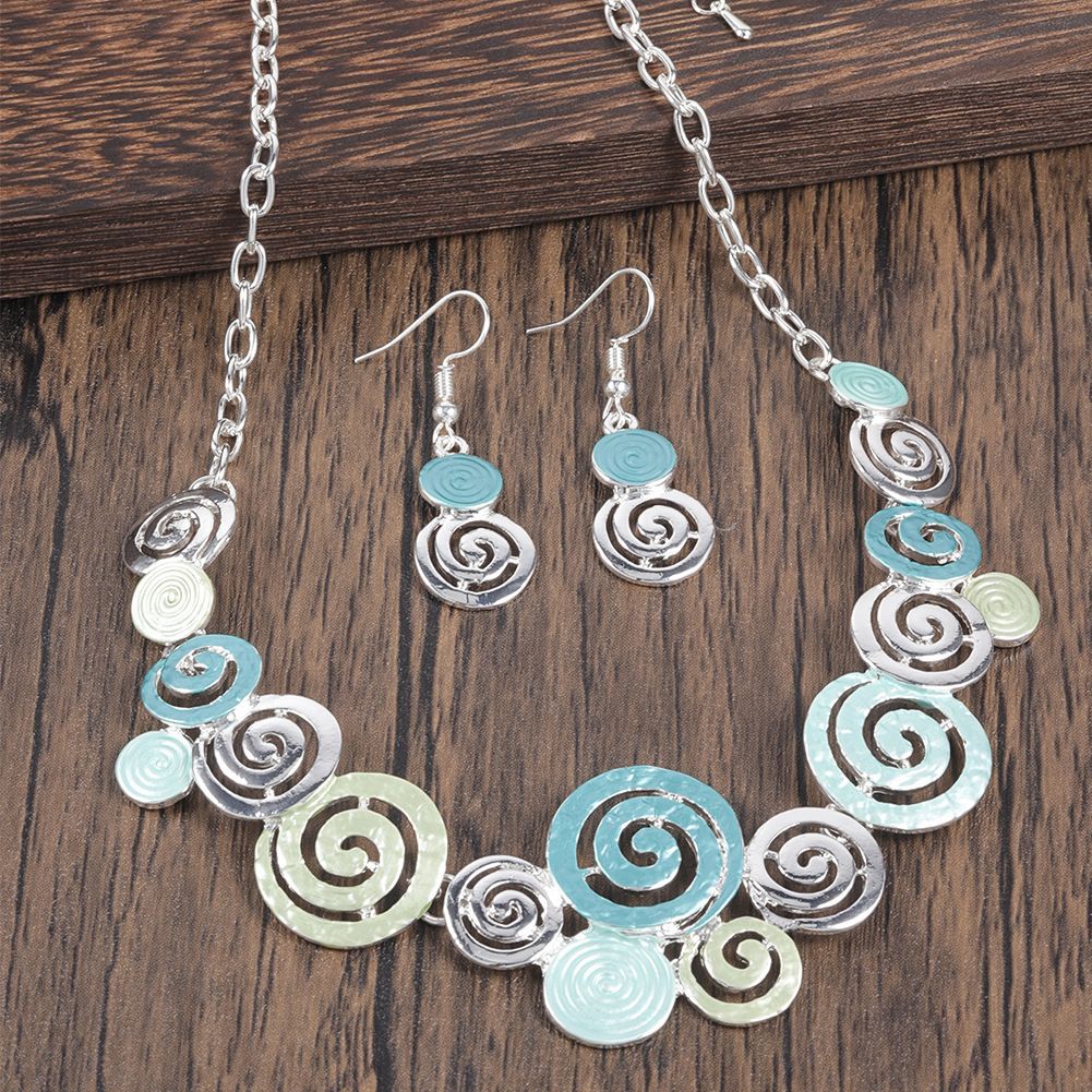 Add a modern and artistic touch to your look with this Zinc Alloy Geometric Round Spiral Necklace and Earring Set. Crafted from high-quality alloy with a dripping oil colour treatment, this set features a hollow spiral design that creates a unique, eye-catching aesthetic.